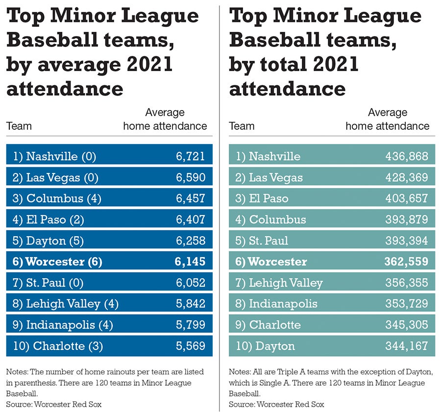 Of the other teams who finished top 10 in attendance, Matheson said they averaged a decrease of 2,200 in fans per game for 2021, while the WooSox saw an increase of 900 fans per game, compared to their 2019 season in Pawtucket.