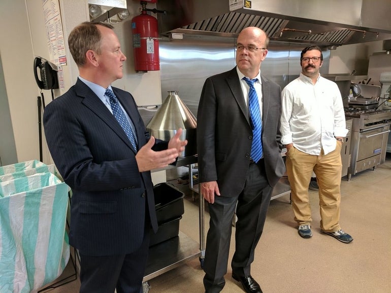 Papla took a quick break from mixing juices as U.S. Rep. Jim McGovern, a Worcester Democrat, toured the facility with Timothy Murray, the president and CEO of the Worcester Regional Chamber of Commerce.