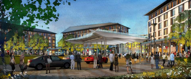 Hotel buildings with front porches would be centered around a town green on the 187–acre property, incorporating an entrance to the 115,000-square-foot casino that would be behind the hotel buildings.