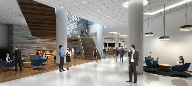 In total, Mercantile Center is made up of 636,100 square feet of office and retail space and a 1,647 space structured parking garage.