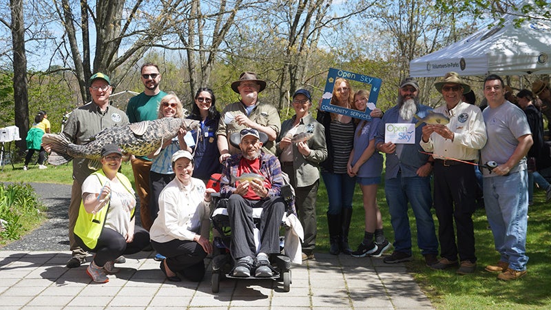 Partnerships are another important element of this work. Each spring, Open Sky’s Community Membership Department partners with Blackstone River National Heritage Corridor, Blackstone River Watershed Association, Massachusetts Department of Conservation & Recreation and Massachusetts Division of Fisheries & Wildlife to hold Family Fun Fishing Day at Riverbend Farm. Individuals served by programs, and community members of all ages and abilities, are invited to attend. Those from Open Sky programs are among the volunteers and members of the planning committee, as well as participants. It goes beyond simply bringing someone fishing and provides them with a chance to meet others who share the same interests, as well as the chance to be involved in planning and implementing a major event.