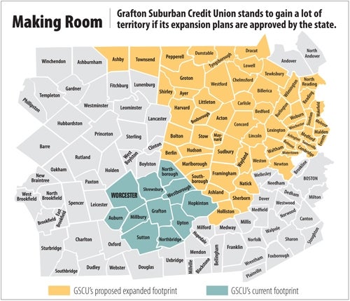 Grafton Suburban Credit Union, an institution with about $114 million in assets and more than 11,000 members, is asking the state Division of Banks to allow it to draw members from all of Middlesex County, instead of the small 11-town region surrounding Grafton.