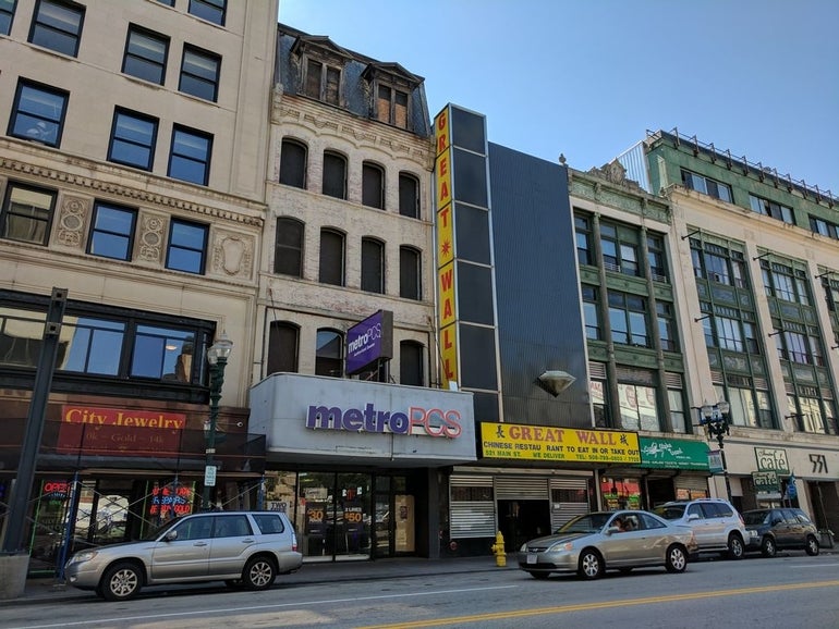 The MetroPCS building, historically known as the Cheney-Ballard Building, and the adjacent the Great Wall Chinese restaurant at 521 Main St., which has a different owner, have been eyed for potential purchase by the city as part of its downtown redevelopment plan.Â