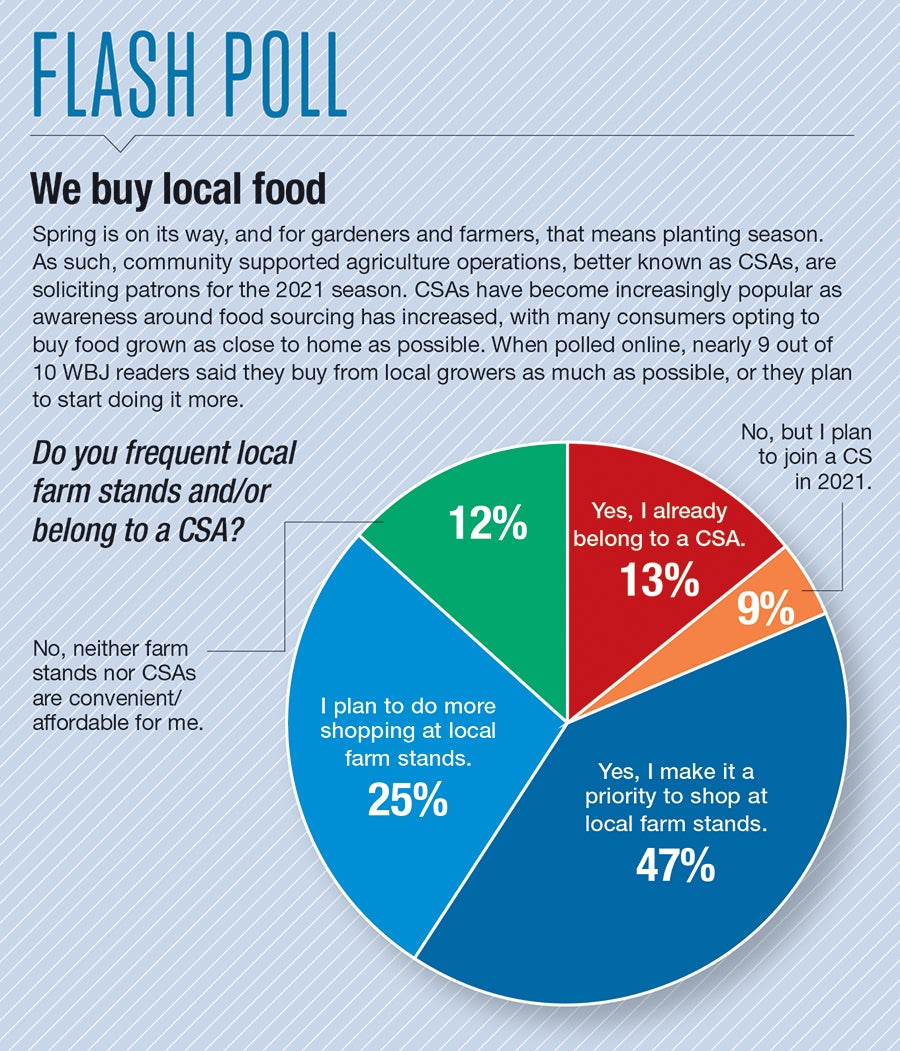 It’s not for naught. Increased interest in buying local produce combined with a pandemic forcing many to stay as close to home as possible led to a nearly 38% increase in CSA shares last season for Free Living Farm, up to 55 from 40 in 2019. Twelve months later, that growth has been sustained, with the farm retaining its new customers year-to-year.