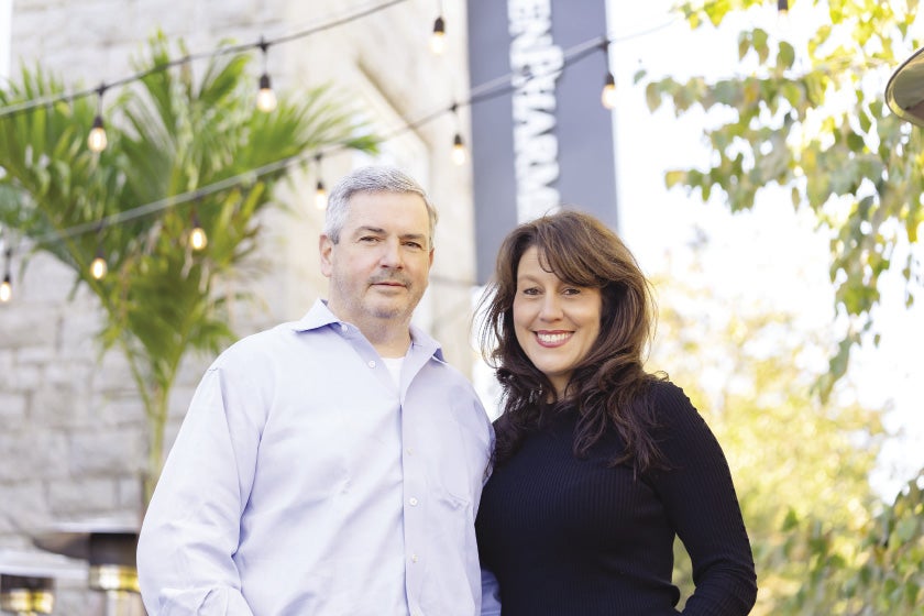 In Franklin, Pat and Beth Downing began visiting and touring more than 75 distilleries across the U.S. as they began planning to open their own. The couple met in pharmacy school at Purdue University in Indiana and moved to Lee, Massachusetts, to run Pat’s family drug store, McClelland Drug Store, which was the oldest continuously-operated pharmacy in the state. After 14 years, the couple sold the drug store and started to look for the next phase of their lives.