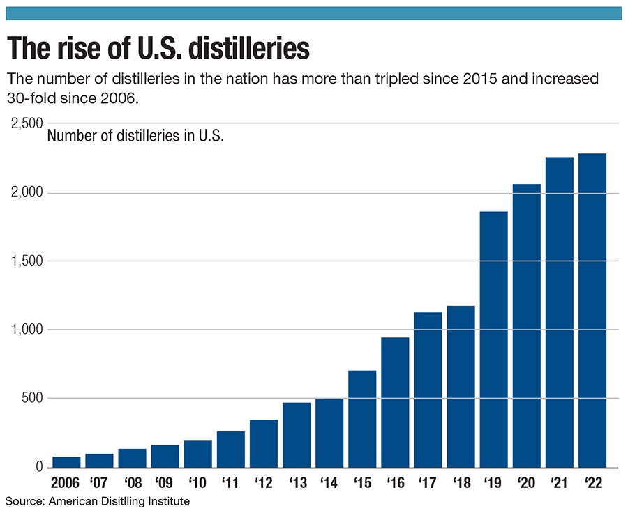 In 2022, market share revenue for spirits like tequila, gin, and rum grew for the 13th consecutive year and leap-frogged beer in the U.S. for the first time, according to the trade association Distilled Spirits Council of the United States. That same year, the beer industry lost 2% of its total volume sales while spirits increased total volume sales for the 25th year in a row, according to IWSR Drinks Market Analysis Ltd.