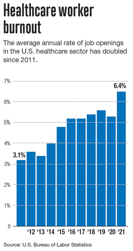 Burnout is nothing new in the healthcare field, but a mental health crisis among healthcare workers may be leading to startling staffing shortages as a third wave of the coronavirus pandemic threatens to overburden hospitals again.