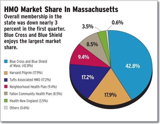Blue Cross and Blue Shield of Massachusetts HMO Blue Inc., Harvard Pilgrim Health Care Inc. and Aetna Health Inc. saw membership reductions of 5.85 percent, 6.41 percent and 13.63 percent respectively.