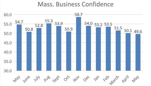 In the Central Massachusetts Business Confidence Index for May, the region’s business leaders had an overall score of 50.3, which is still in optimistic territory. The Central Massachusetts Business Confidence Index is a subset of the AIM’s Business Confidence Index. It is based on a survey of more than 140 Massachusetts employers and is calculated on a 100-point scale, with 50 as neutral; above 50 as positive; and below 50 as negative. The Central Mass. index is a joint indicator conducted by AIM and the Worcester Regional Chamber of Commerce.