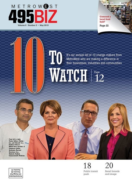 Finally, I’d like to make an important clarification about our last issue: Not pictured in our feature about the women leading MetroWest-area chambers of commerce were Susanne Morreale-Leeber, president and CEO of the Marlborough Regional Chamber of Commerce, and Stephanie Stillman, executive director of the Concord Chamber of Commerce.