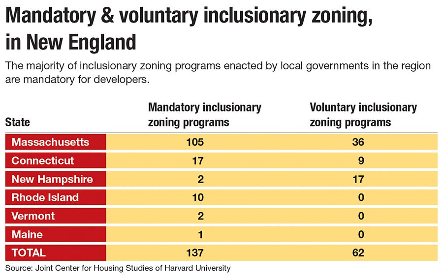 Some forms of IZ merely encourage developers to set aside units as affordable with density bonuses and other incentives they weren't able to take advantage of before. A good example, he said, is Massachusetts Chapter 40B, which adds flexibility to the housing market because it gives developers the ability to bypass local zoning codes, with the catch being they have to make their projects 20-25% affordable.
