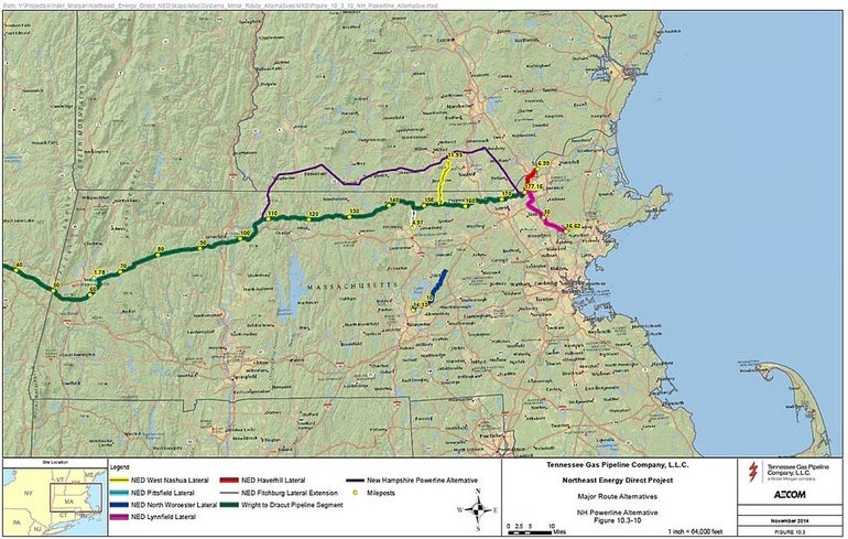 The pending project, which is subject to lengthy review, was previously proposed to have TGP building a 36-inch pipeline through about 40 communities across the northern part of Massachusetts. This would have linked a distribution center in Dracut with shale fields in Pennsylvania, where natural gas is harvested through fracking, which itself has generated opposition from fracking opponents in Massachusetts. Opponents have cited environmental concerns about the pipeline.