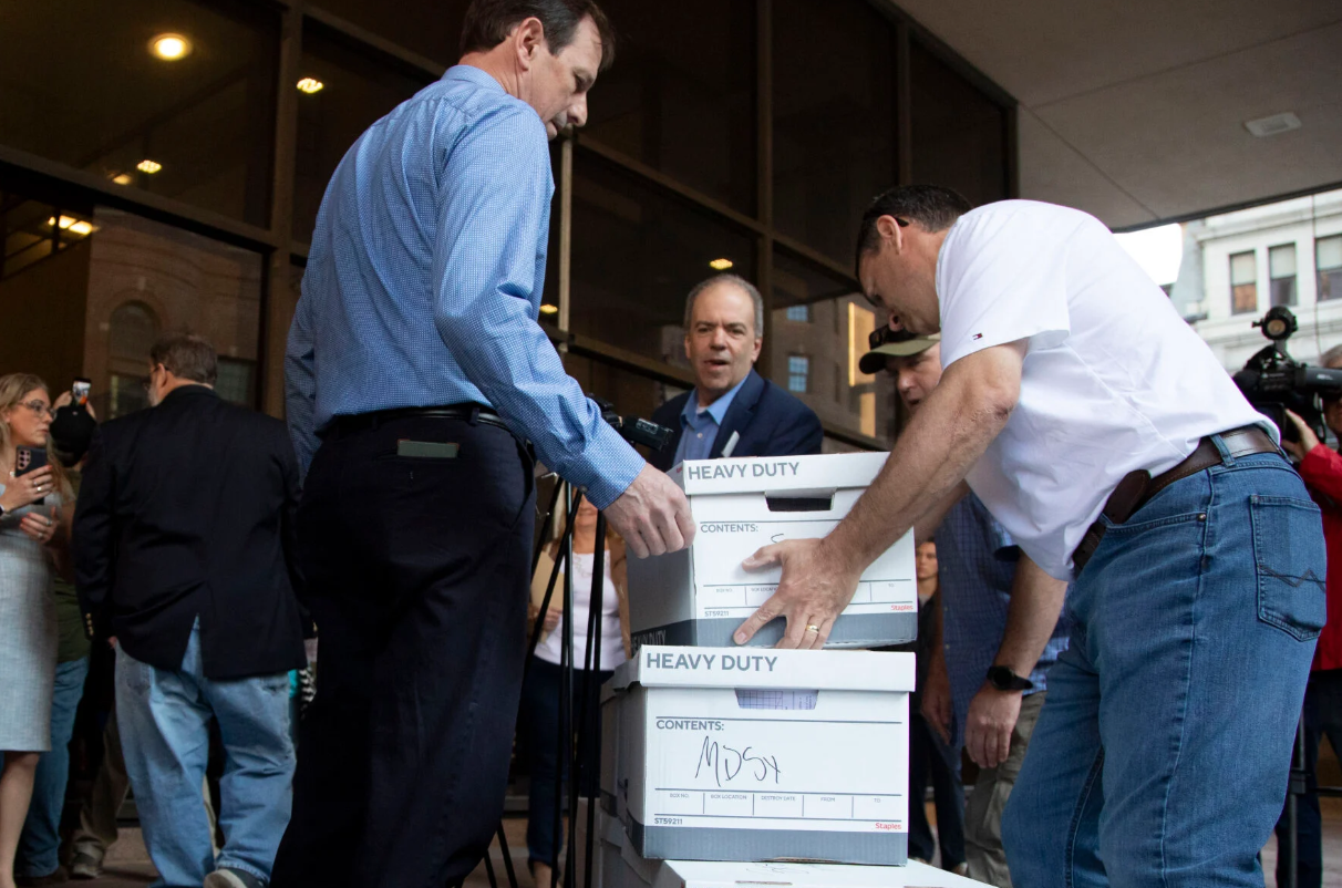 Election officials are reviewing nearly 150 boxes of signatures submitted by campaigns, and as many as 12 questions could be presented to voters in November 2026. The measures span a wide range of policy areas, including tax policy, rent control, public records access, election reforms and housing development.