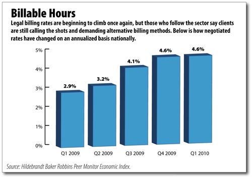 According to the Peer Monitor Index, which is produced by Hildebrandt and compiled by Medice, legal fee increases are beginning to move back to their pre-recession days.