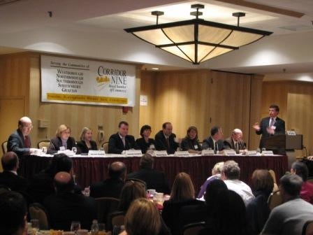 Nine state and federal lawmakers gathered at the DoubleTree Hotel for the Corridor Nine Area Chamber of Commerce’s Legislative Breakfast this morning.