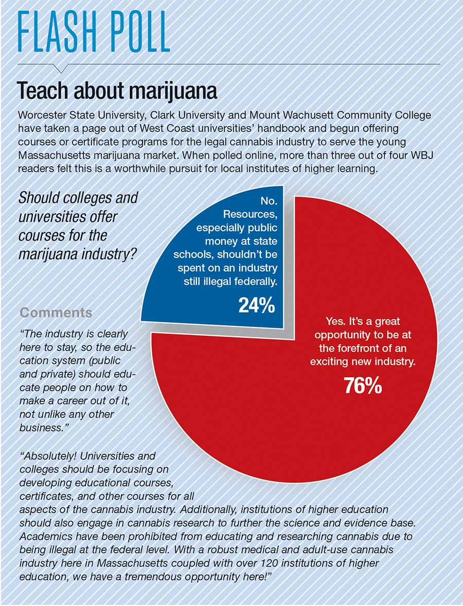 Marijuana has been a part of college campuses for dozens of years, but the drug is now finding its way into the classroom, as Central Massachusetts educators are opening their doors to the cannabis industry.