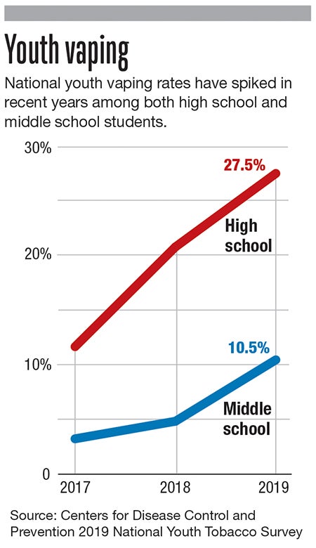Most worrisome to health officials has been spiking youth rates, with minors far more likely to vape than adults.