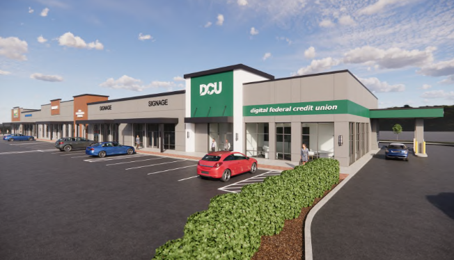The new commercial spaces will be located next to the existing retail space at the plaza, with the newly constructed DCU branch being located near the corner of Albany and Casco Streets.