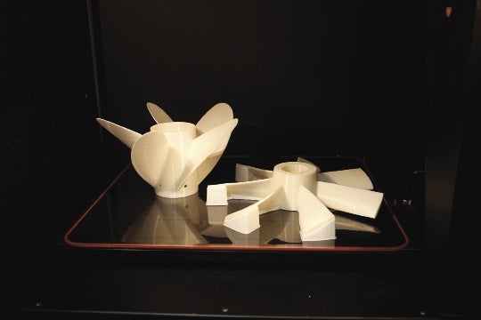 It can make complicated parts that someone in the shop used to have to machine from a block of plastics. That could take a day or more, depending on the complexity, Phillips said.