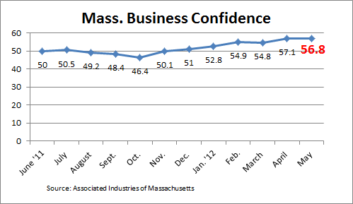 AIM’s Business Confidence Index edged downward three-tenths of a point in May, to 56.8, although it’s more than 5 points better than its reading in May 2011.