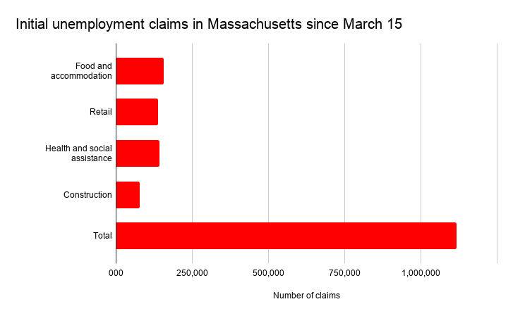 Having so many Massachusetts residents out of work may soon have health consequences, as well. The advocacy group Families USA estimates 8% of Massachusetts adults now lack health care because they’ve lost their jobs. The rate in 2018 was 4%, according to the group. According to the U.S. Census, the rate was 2.8%, easily the best in the country.
