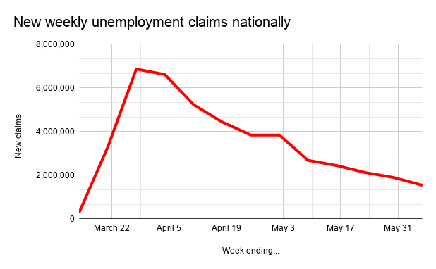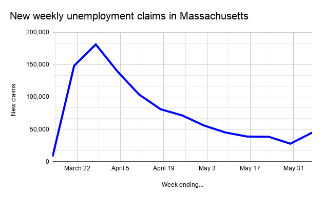 After weeks of trending downward following the initial spike in applications in March, the number of statewide claims rose again for the week ending June 6, where 44,732 people made new claims. That is 17,102 more than the previous week.