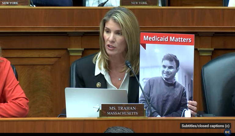 Like other Democrats on the committee, U.S. Rep. Lori Trahan of Massachusetts used her opening remarks to highlight a constituent. She held a photo of Philip from Haverhill under the title “Medicaid Matters,” recounting the support he has received from a Medicaid-funded job skills program for individuals with disabilities.
