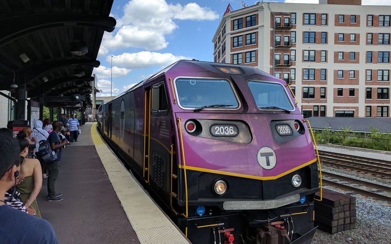 The commuter rail system connects communities in eastern Massachusetts, Rhode Island and downtown Boston with 137 stops throughout the region, according to the T. Â The service area includes 12 routes that run seven days a week, plus service from Boston to Gillette Stadium and Providence for special events.
