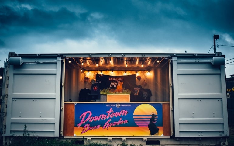Pending final approval from Hudson police, the brewery will outfit a shipping container with a bar on the property and provide picnic table seating for 80.