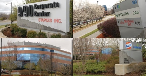 Major sites in Framingham, such as its downtown and its tech park near the intersection of Route 9 and the Massachusetts Turnpike;