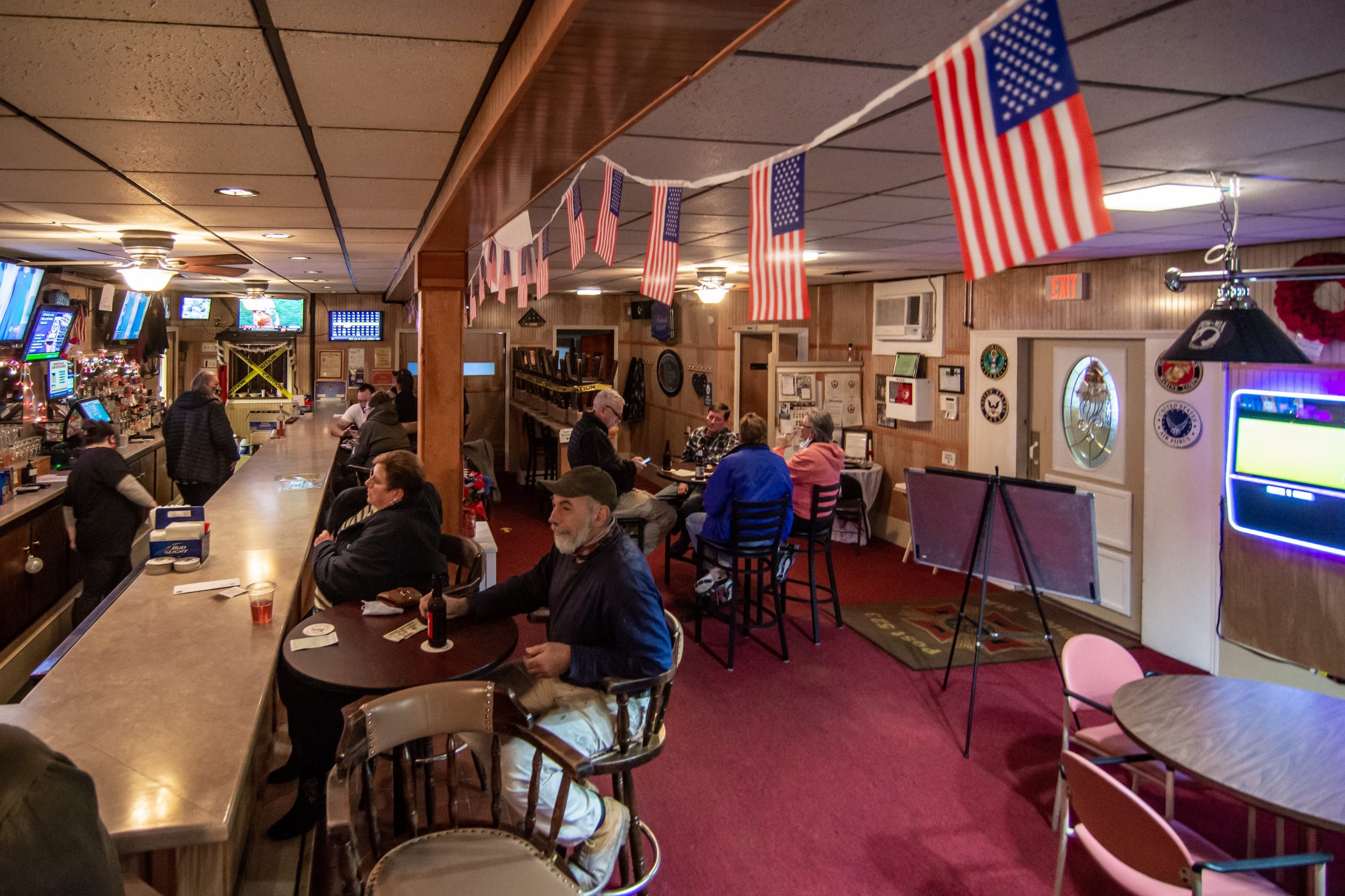 At the Vernon Hill American Legion post, tables in the lounge are set 6 feet apart, and all patrons have to remain seated.
