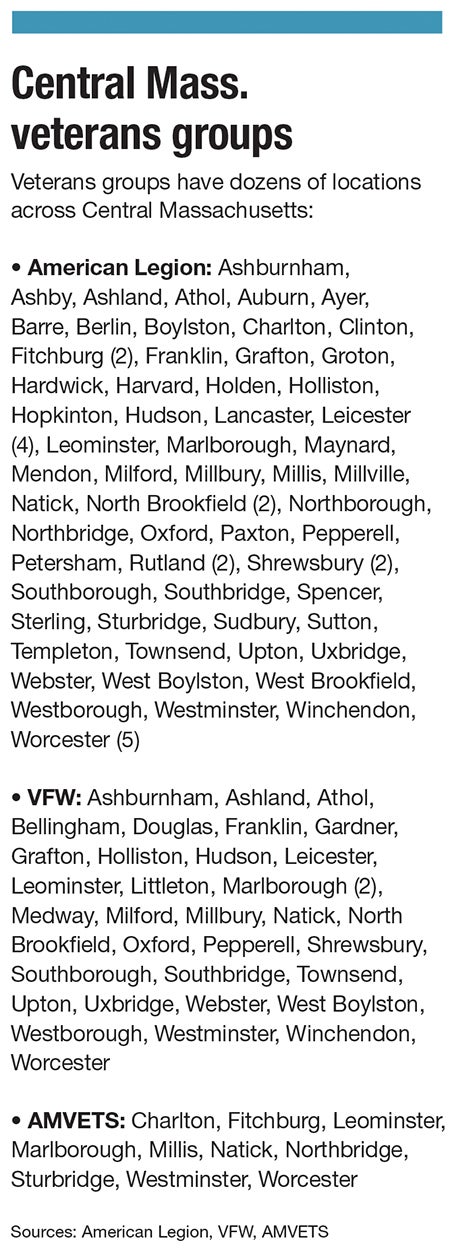 Still, these veterans posts are ubiquitous. In Central Massachusetts alone, the American Legion has 73 locations. The VFW has 34, and AMVETS has 10.