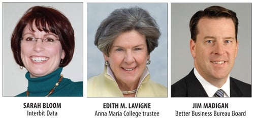 Anna Maria College of Paxton has added ALFRED A. LAGAN and EDITH M. LAVIGNE to its board of trustees. Lagan is the founder and chairman of Congress Asset Management Co. in Boston. He previously served for four years in the U.S. Navy. LaVigne is a volunteer with organizations including the Cape Cod Healthcare Organization, the Jupiter Elementary School in Jupiter, Fla., and the Boys and Girls Clubs of Worcester. She has a bachelor’s degree from Anna Maria and served as a trustee of the college from 2001 to 2007.