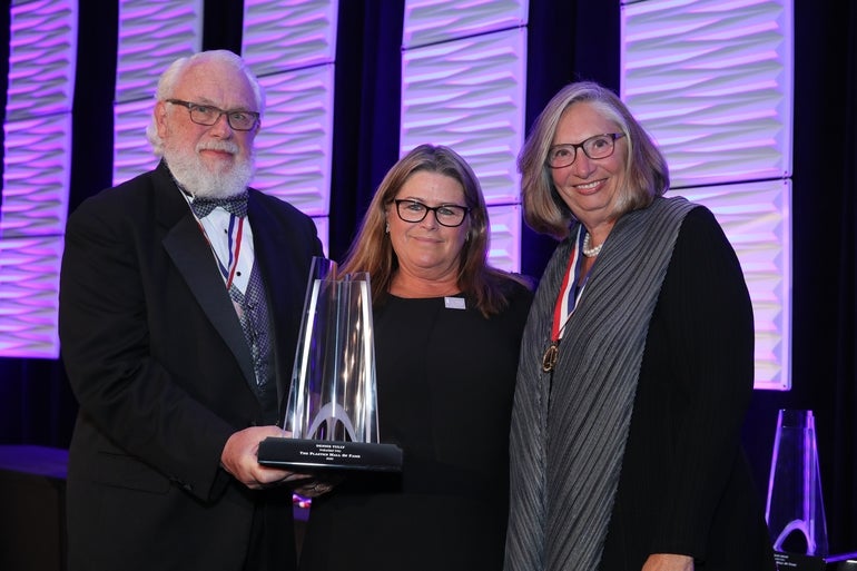 At the induction ceremony, Tully’s wife, Darlene, accepted the award on his behalf.