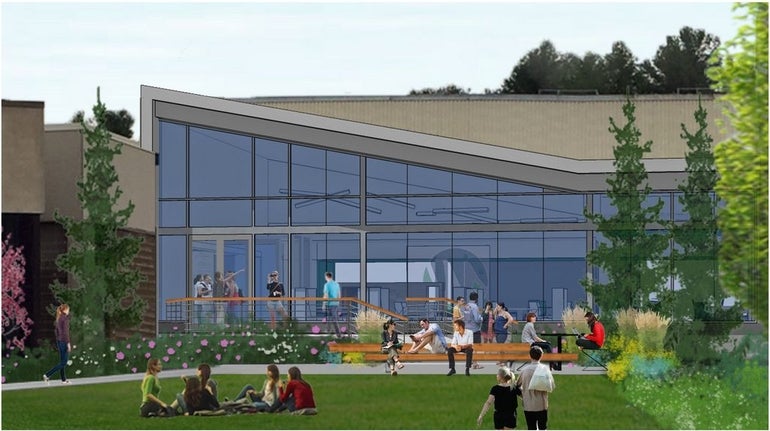 It will have a lounge and meeting space, group study area, game room, and televisions. It will open out to a green space with outdoor WiFi and seating.