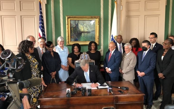 “This is a classic example, in many respects, of a citizen movement started by a very small number of people in which the right thing to do became clearer and clearer the longer the discussion went on,” Baker said just before putting pen to paper. “I am very glad that this made its way to our desk by the end of the session. I normally, as everybody knows, don’t comment on legislation that’s pending because it has the nasty tendency to change as it works its way through the process, but I said months ago that I hoped this would make it to my desk and I would be able to sign it and I’m very glad this is our first post-pandemic signing ceremony.”