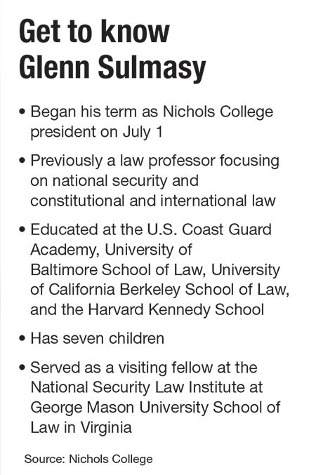 When students return to campus at Nichols College this fall, they will be greeted by a new face: Glenn Sulmasy, who began his term July 1 as president of the institution in Dudley.