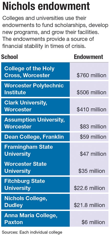 Nichols endowment is $22 million, which is the second lowest among the 10 four-year Central Mass. universities.