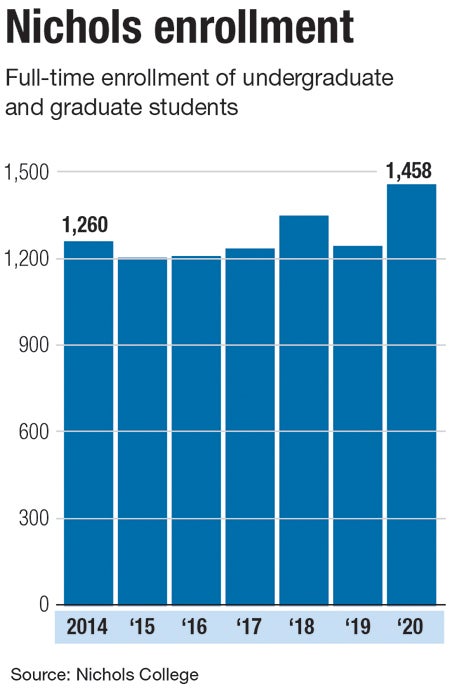 Additionally, Sulmasy said marketing alumni outcomes in job placement and graduate school offers as critical to the ability to prevent the statewide trend of declining student enrollment from occurring at Nichols, where enrollment fell 7.8% from the 2018 to 2019 fall semester but rose 17% from 2019 to 2020.