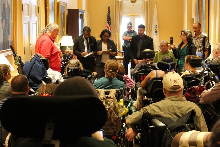Hours of care will not be cut under the new policy, but demonstrators said a cap on hours will require a person who needs over 40 hours of care to find and train additional personal care attendants, which they described as a difficult and time-consuming process.