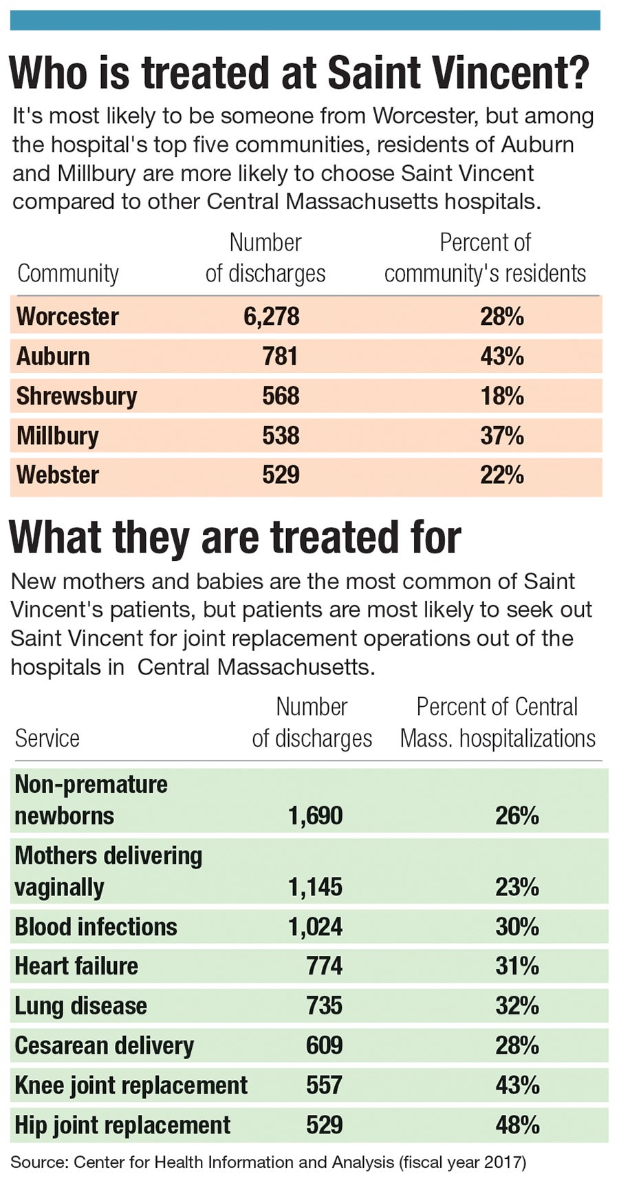 In Worcester, opioid-related fatalities rose from 80 to 97 last year, and Saint Vincent was fifth highest in the state in 2016 and 2017 for the highest rate of emergency department discharges attributed to opioids at more than 2.5 %, according to a June report by the Massachusetts Health Policy Commission.