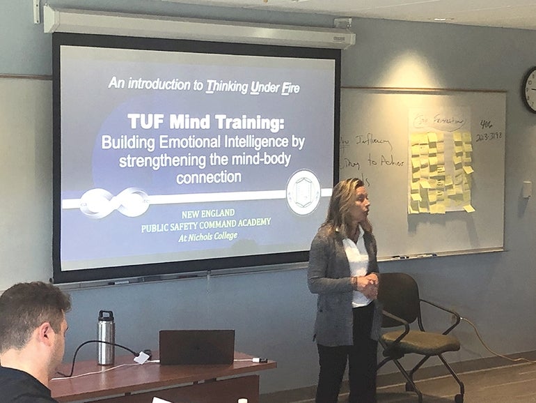 The goal of the academy was to train command-level public safety leaders in the principles of what it takes to lead day-to-day and in crisis situations. Six Nichols students and 12 public safety professionals from New England and even one from Montana lived on campus for the duration of the program.