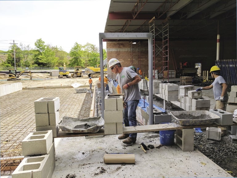 With the Medway Road plaza almost entirely vacant, RD found it the right time to start over. The parking lot was dug up, and a new drainage system is being installed. Asbestos was removed, and the building was stripped down to only the concrete floor and steel shell. Kmart’s old garage doors were covered up, and a bigger loading dock was installed for those who will bring deliveries to Stop & Shop.