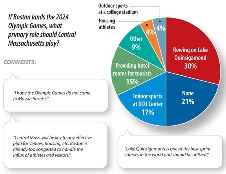 Boston will be the U.S. representative bid to host the 2024 Olympic Games. While events in other Games have been spread out well beyond their host cities, the Boston organizers plan to host all their events closer to the city. But should Central Massachusetts play a role? In last week’s Flash Poll, 30 percent suggested rowing events on Lake Quinsigamond would be a good idea.