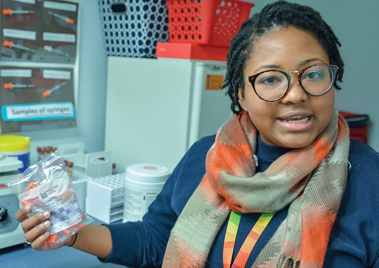 “We go to areas that we know active injection drug use is occurring and sweep the area for syringes, give out bleach kits, and talk to the people about safe injection practices,” she said.