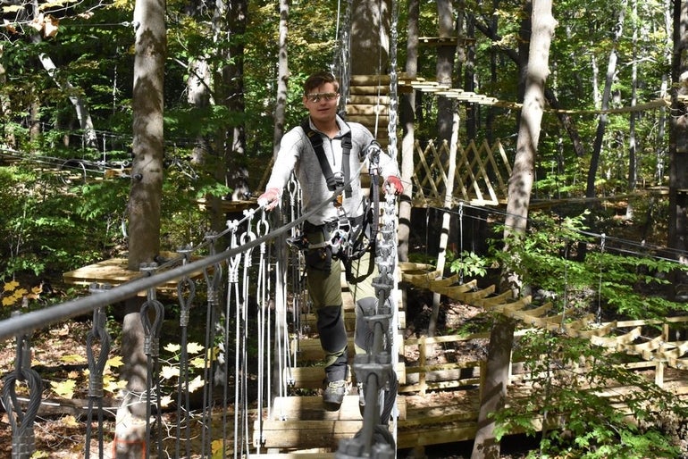 One of the most popular features is the “Leap of Faith,” Funtleyder said. A visitor will jump to the ground from 30 to 40 feet up. The name comes from the fact that it’s not a free fall. A harness system slowly lowers the jumper to the ground.