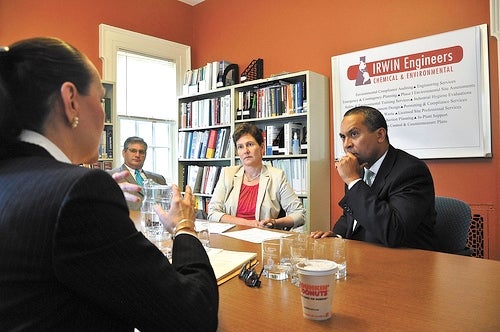 Patrick was in friendly territory at Irwin Engineers Inc. in Framingham. The company’s vice president of operations, Lana Carlsson-Irwin, said in a statement that premiums for family health insurance coverage have increased 101 percent in 10 years at Irwin, even with “significant deductibles.”