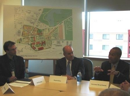 While on a swing through Central Massachusetts Patrick met with business leaders and WPI officials to discuss the Gateway Park project.