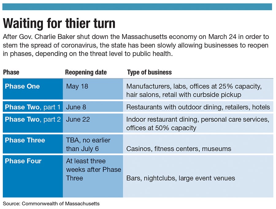If there's anything businesses have learned during 2020, surviving with uncertainty would be at the top of the list. As Gov. Charlie Baker continues to announce the phased reopening of the economy shut down in March, places such as fitness centers, entertainment venues, nightclubs, and theaters continue to remain either closed, or working within restrictions, awaiting Phases Three and Four to reopen.