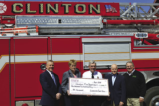Leominster Credit Union (LCU) donated $1,250 to the Clinton Fire Department for emergency 911 hardware and software technology. Pictured, left to right, are: John O’Brien, president and CEO, Leominster Credit Union; Jenny Gray, Clinton branch manager, LCU; John McLaughlin, acting chief, Clinton Fire Department; Joseph Quintal, director, LCU; and Anthony Gasbarro, chairman of the board, LCU.